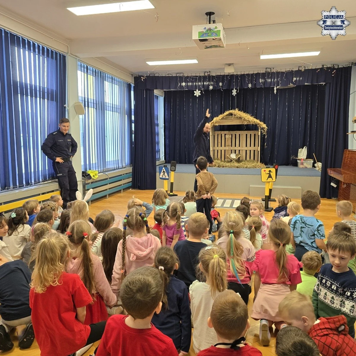Mundurowi ze Świętochłowic odwiedzili Miejskie Przedszkole nr 13, gdzie spotkali się z najmłodszymi, aby w przystępny i ciekawy sposób porozmawiać o bezpieczeństwie. Tematyka spotkania została dostosowana do wieku dzieci i dotyczyła codziennych sytuacji, z jakimi mogą się spotkać, zwłaszcza w okresie zimowym oraz podczas przerwy świątecznej.