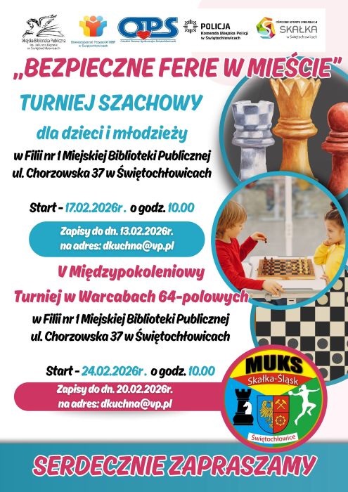 Ferie zimowe w Świętochłowicach zapowiadają się nie tylko aktywnie, ale i bezpiecznie. W ramach akcji „Bezpieczne ferie w mieście” Miejska Biblioteka Publiczna im. Juliusza Ligonia zaprasza dzieci, młodzież oraz dorosłych na dwa turnieje planszowe, które połączą rywalizację, naukę i integrację.