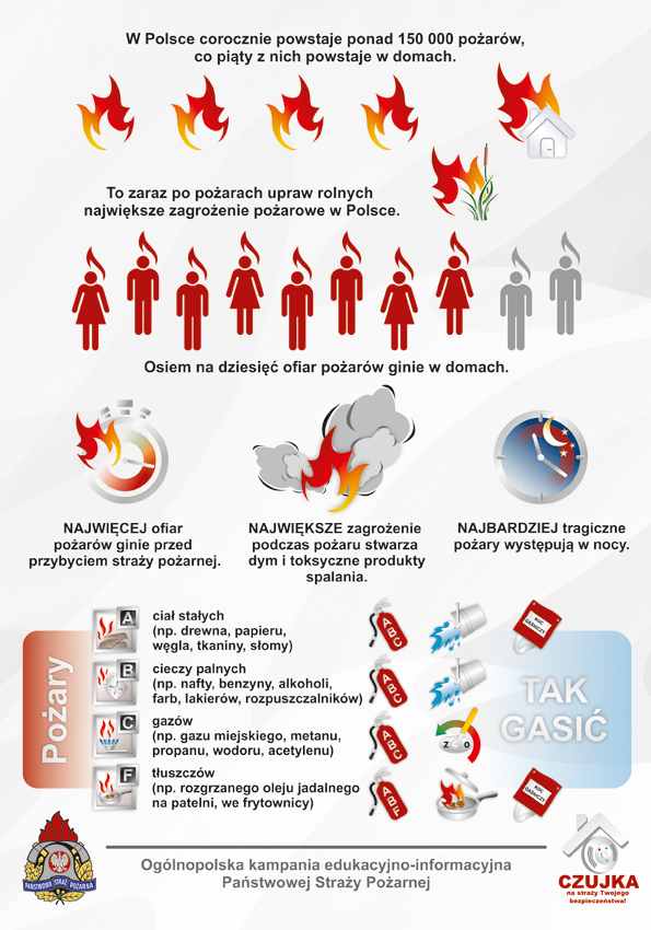 Czujka ogólnopolska kampania edukacyjno-informacyjna na temat zagrożeń związanych z możliwością powstania pożarów w mieszkaniach lub domach jednorodzinnych oraz zatruciem tlenkiem węgla.Więcej informacji na plakacie: