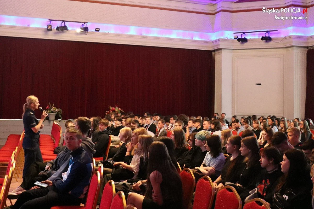 Spotkanie było skierowanie przede wszystkim dla uczniów, gdzie prelegenci omawiali wszelkie uzależnienia, w tym alkoholizm i narkomanię, stanowiące poważny problem, który staje się coraz bardziej powszechny i dosięga coraz to młodsze osoby. Młode pokolenie jest przyszłością naszego narodu, dlatego już od najmłodszych lat należy objąć młodzież „parasolem ochronnym”, który będzie chronić przed uzależnieniem od używek. Aby zapobiec wzrostowi powyższych uzależnień wśród małoletnich, policjanci Komendy Miejskiej Policji w Świętochłowicach podejmują szereg działań profilaktycznych, promujących zdrowy styl życia oraz rozwijających umiejętności radzenia sobie z presją rówieśniczą.