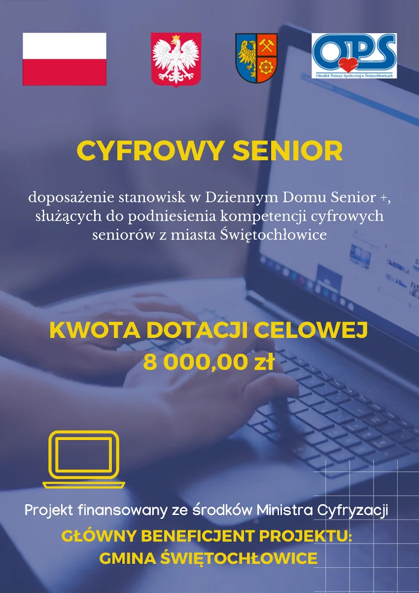 „Cyfrowy Senior- doposażenie stanowisk w Dziennym Domu Senior+, służących do podniesienia kompetencji cyfrowych seniorów z miasta Świętochłowice”.
