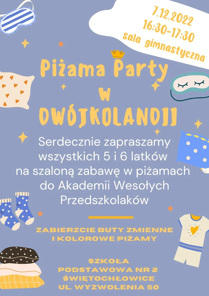 Tematem będzie piżamowe party! Zachęcamy wszystkie 5 i 6-latki do wspólnej zabawy.