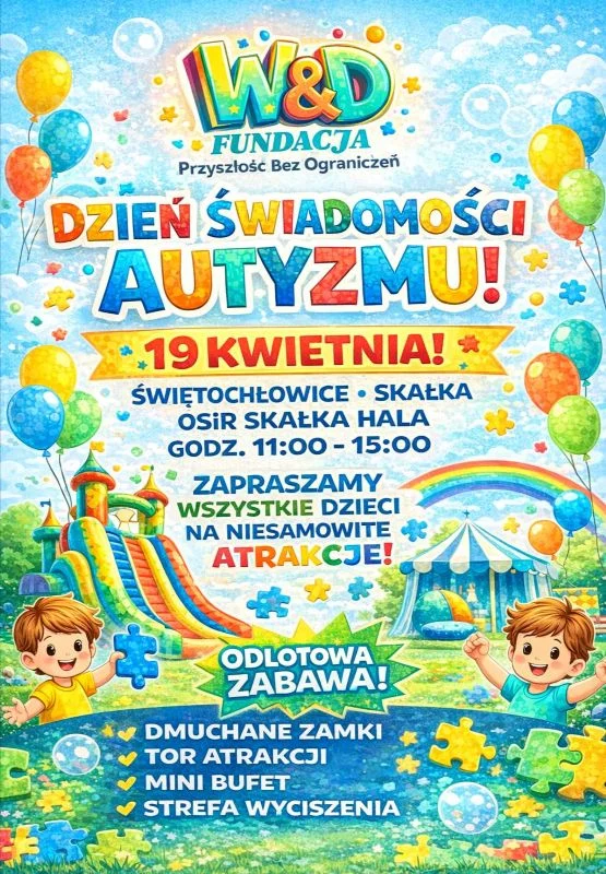 Już w najbliższą niedzielę, 19 kwietnia, w hali OSiR Skałka w Świętochłowicach odbędzie się Dzień Świadomości Autyzmu. Wydarzenie potrwa od godz. 11.00 do 15.00 i będzie skierowane do dzieci oraz rodzin, które chcą spędzić czas na wspólnej zabawie w przyjaznej atmosferze.