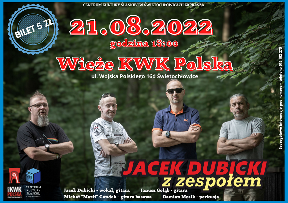 Już w niedzielę 21 sierpnia, o godzinie 18:00 Centrum Kultury Śląskiej zaprasza na wyjątkowy koncert Jacka Dubickiego z zespołem.