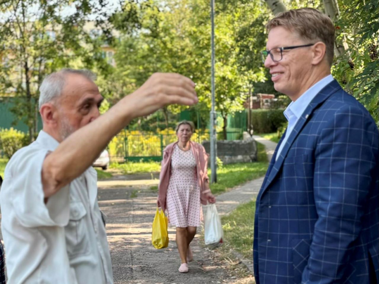 Po indywidualnej rozmowie z jednym z mieszkańców prezydent Daniel Beger udał się na miejsce, gdzie do rozmowy dołączyło jeszcze kilka osób. Wspólnie poruszono tematy takie jak:
