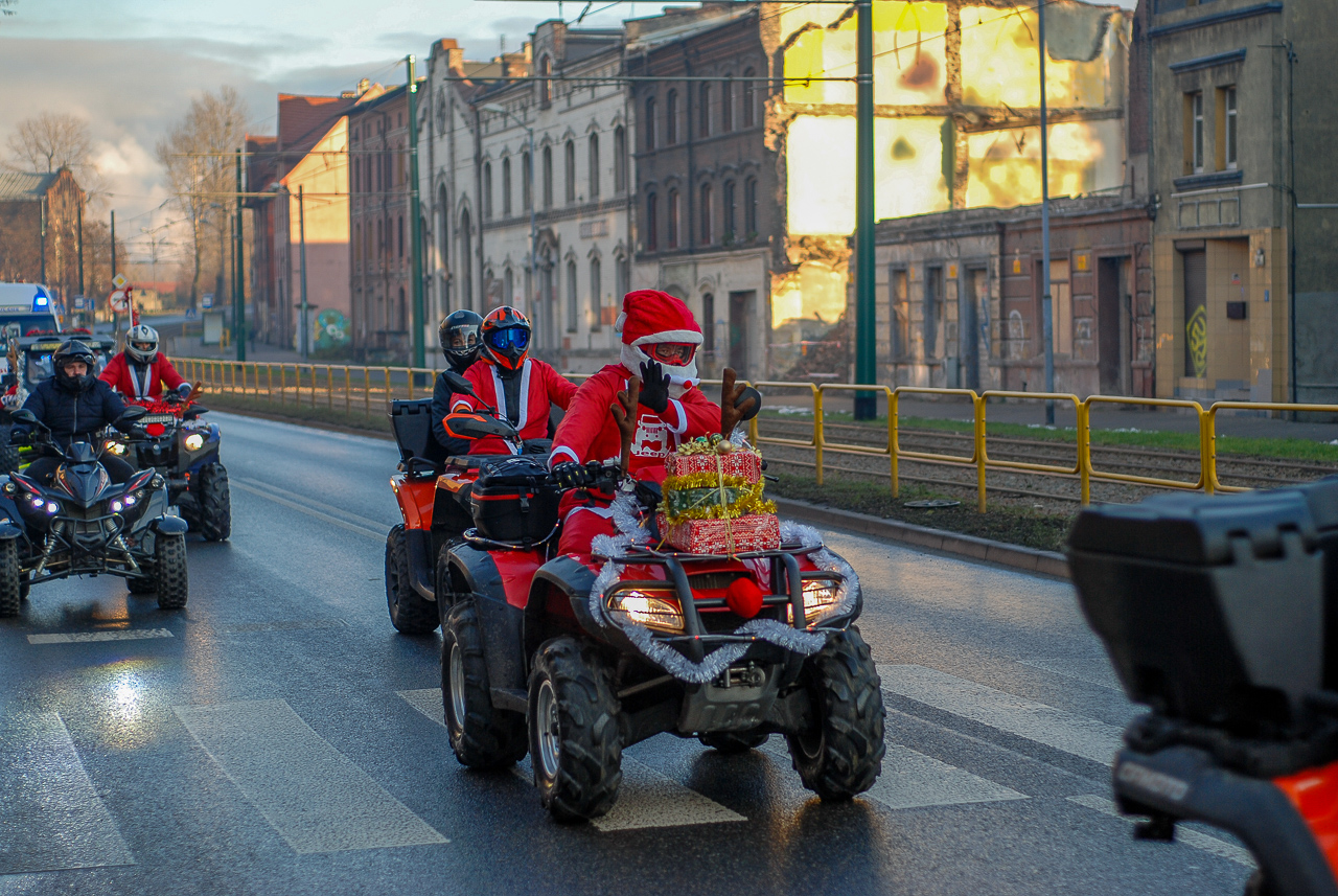 Kilkudziesięciu motocyklistów i kierowców quadów pojawiło się dzisiaj w Świętochłowicach pod domem opieki społecznej przy ul. Imieli. Rozdawali prezenty świąteczne podopiecznym instytucji – postawni bikerzy, wolontariusze i prezydenci miast.