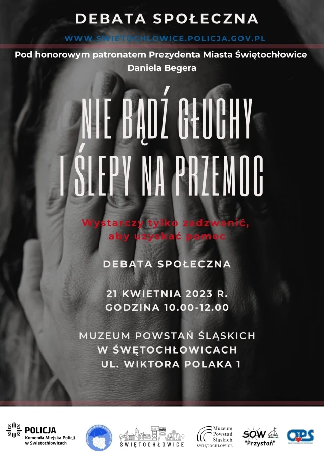 W dniu 21 kwietnia w Muzeum Powstań Śląskich w Świętochłowicach odbędzie się debata pod nazwą „Nie bądź głuchy i ślepy na przemoc”.