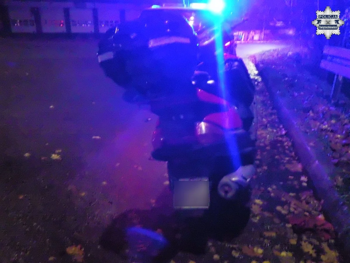 Świętochłowiccy policjanci zatrzymali 36-letniego mieszkańca powiatu lublinieckiego, który w nocy z 10 na 11 listopada poruszał się motorowerem po ulicy Harcerskiej. Uwagę mundurowych zwróciła tablica rejestracyjna o nietypowo dużym rozmiarze. Jak się szybko okazało – tablice pochodziły z innego pojazdu, a sam jednoślad nie był dopuszczony do ruchu.