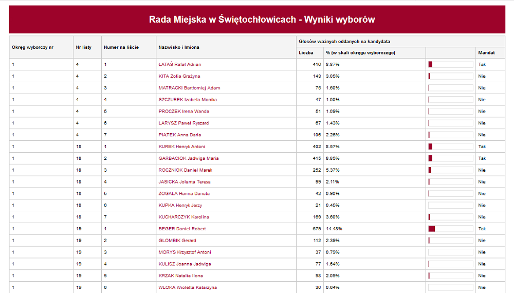 Państwowa Komisja Wyborcza ogłosiła już oficjalne wyniki wyborów w Świętochłowicach!