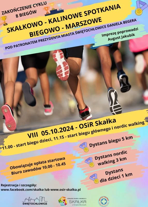 Świętochłowiczanie będą mieli okazję po raz ostatni w tym sezonie pobiec w Skałkowo – Kalinowym Spotkaniu Biegowo – Marszowym. Jak zawsze na uczestników czeka dystans 5 kilometrów, a w przypadku nordic walking 3 kilometrów. Organizatorzy nie mogli pominąć dzieci, na które czeka 1 kilometr. Najmłodsi biegacze wystartują już ogodz. 11.00, a starsi o 11.15. Wydarzenie odbędzie się na terenie OSiR Skałka.