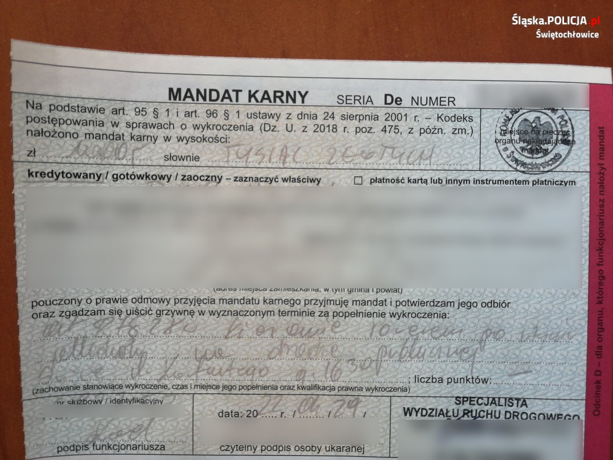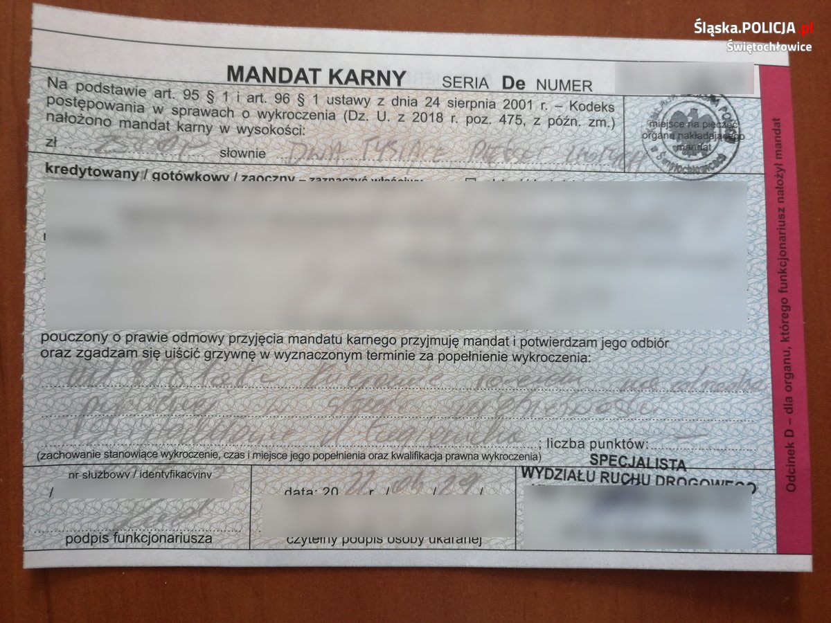 Nieszczęśliwiec kwitu za 2500 zł kierował rowerem w stanie nietrzeźwości. Do tego, dla swojego „bezpieczeństwa”, poruszał się po chodniku, za co również otrzymał mandat. Kolejny kierujący rowerem był „bardziej trzeźwy” od poprzednika. Jego stan wykazał, że był „po użyciu alkoholu”. Dlatego otrzymał grzywnę w kwocie 1000 zł.