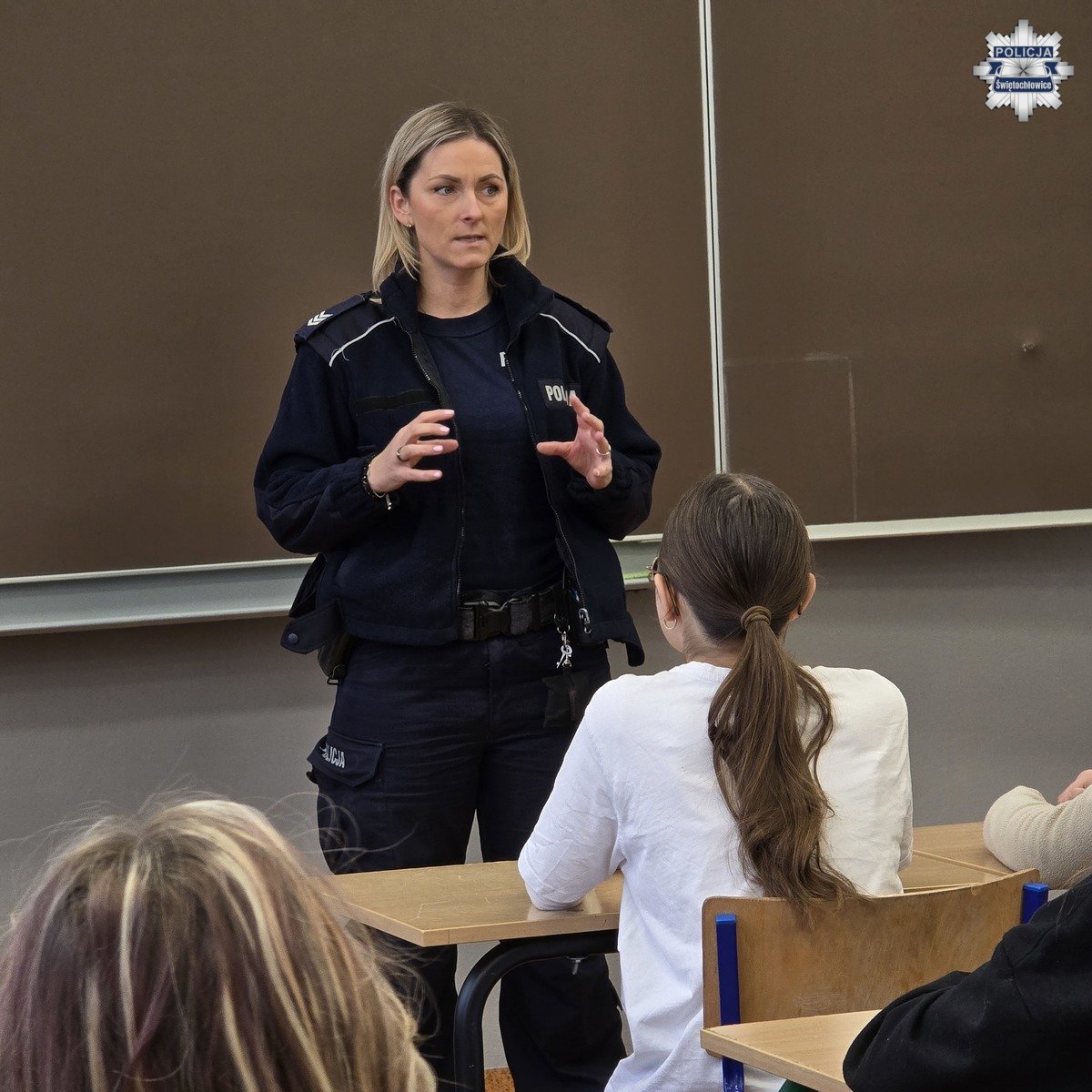Mundurowi ze świętochłowickiej policji spotkali się z uczniami Szkoły Podstawowej numer 19, aby porozmawiać o hejcie i cyberprzemocy. Podczas prelekcji omówiono również odpowiedzialność prawną nieletnich, zwracając uwagę na konsekwencje nawet pozornie niewinnych działań w sieci. Spotkanie miało na celu zwiększenie świadomości młodych osób i promowanie bezpiecznego oraz odpowiedzialnego korzystania z internetu.