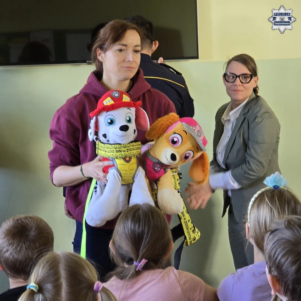 Policjanci i uczniowie rozmawiali o zwierzętach. Akcja „Łapy w górę” w Świętochłowicach