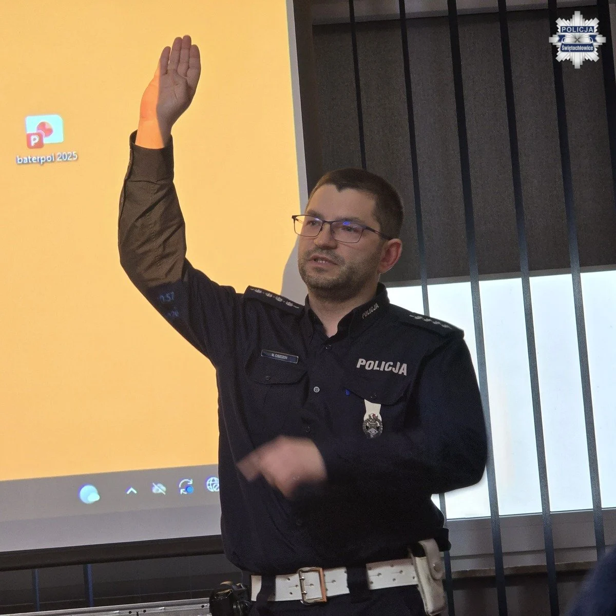 Policjanci z miejscowej drogówki przeprowadzili trzydniowe szkolenie dla świętochłowickich strażaków. Kierowanie ruchem, bezpieczeństwo na miejscu wypadków i kolizji, wybrane wykroczenia zarówno drogowe oraz przypomnienie przepisów dotyczących kierowania pojazdami uprzywilejowanymi. Spotkanie odbyło się w siedzibie Państwowej Powiatowej Straży Pożarnej w Świętochłowicach.