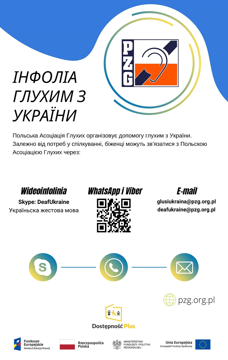 - wideolinię – skype: DeafUkraine (ukraiński język migowy),