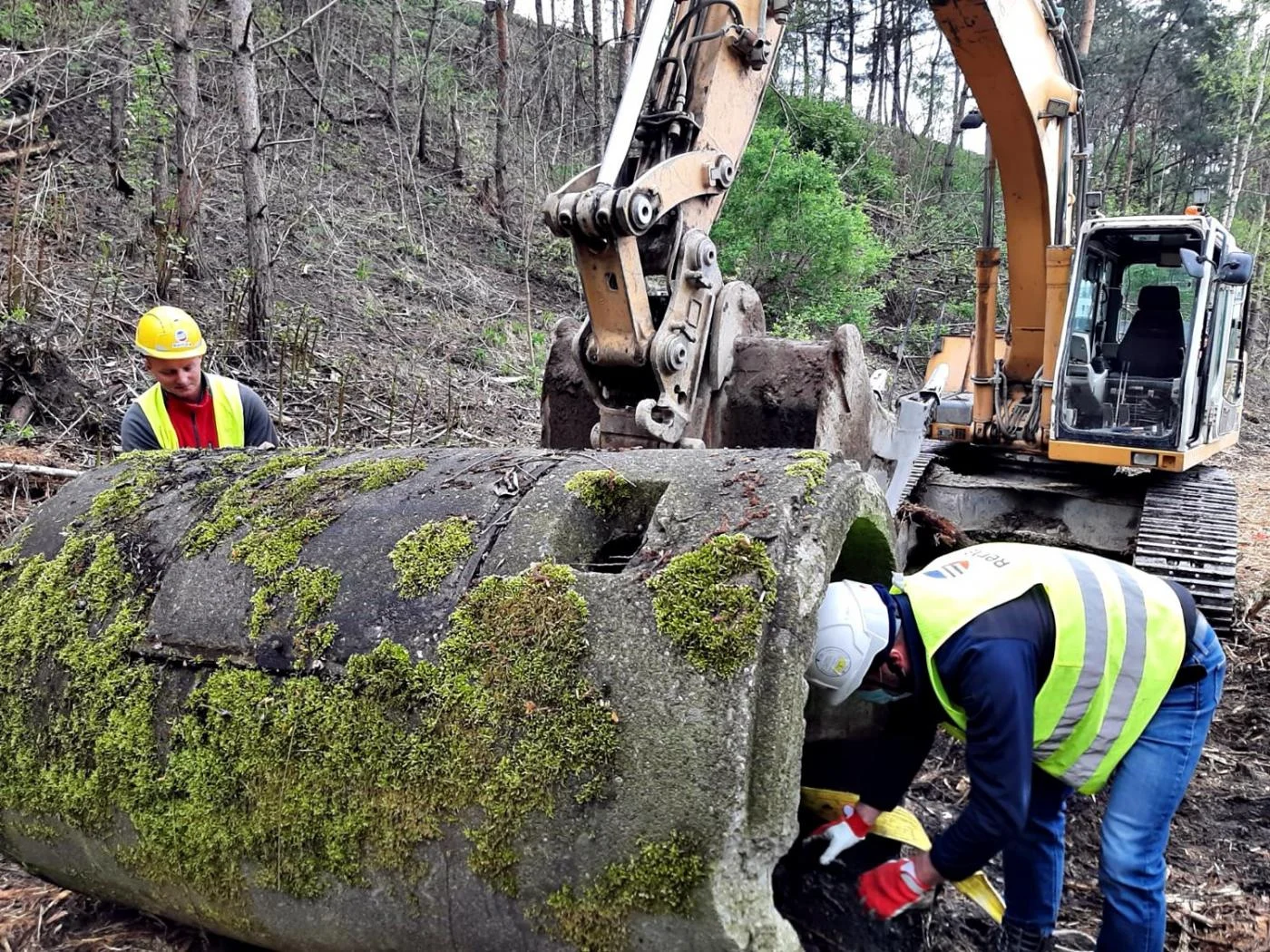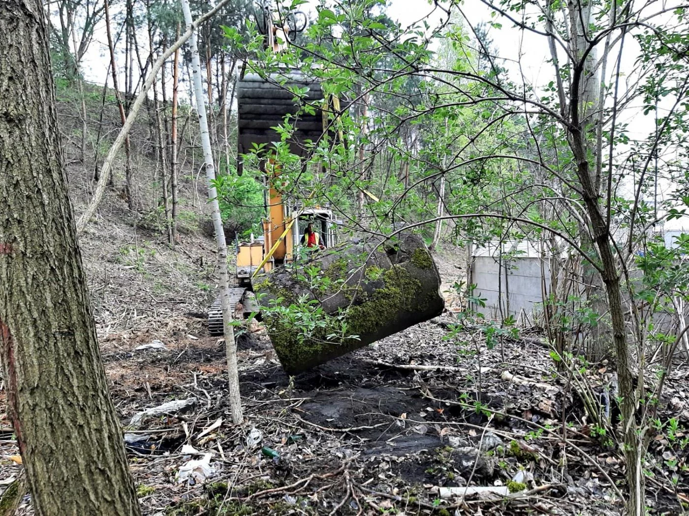 Poniemiecka wieża wartownicza znaleziona podczas remediacji stawu Kalina