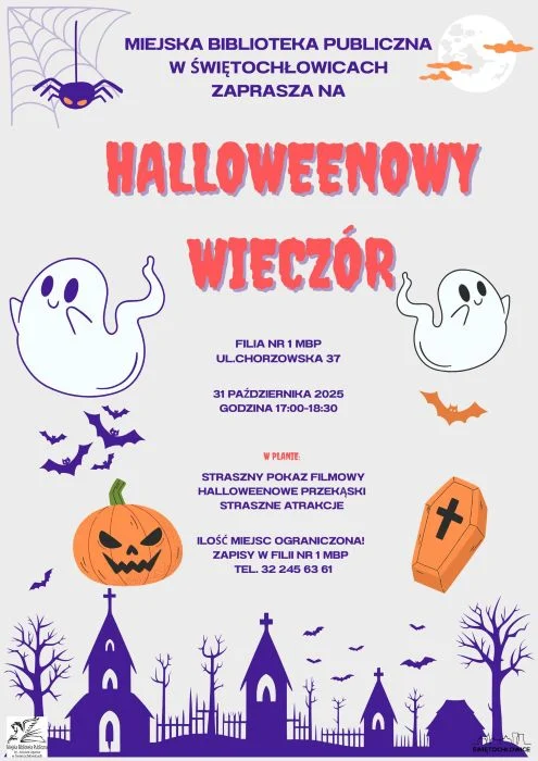 W Świętochłowicach szykuje się pełen emocji wieczór! Miejska Biblioteka Publiczna zaprasza młodszych mieszkańców na specjalne wydarzenie z okazji Halloween. Halloweenowy Wieczór odbędzie się 31 października 2025 roku (piątek) w godzinach 17:00–18:30 w Filii nr 1 MBP przy ul. Chorzowskiej 37.