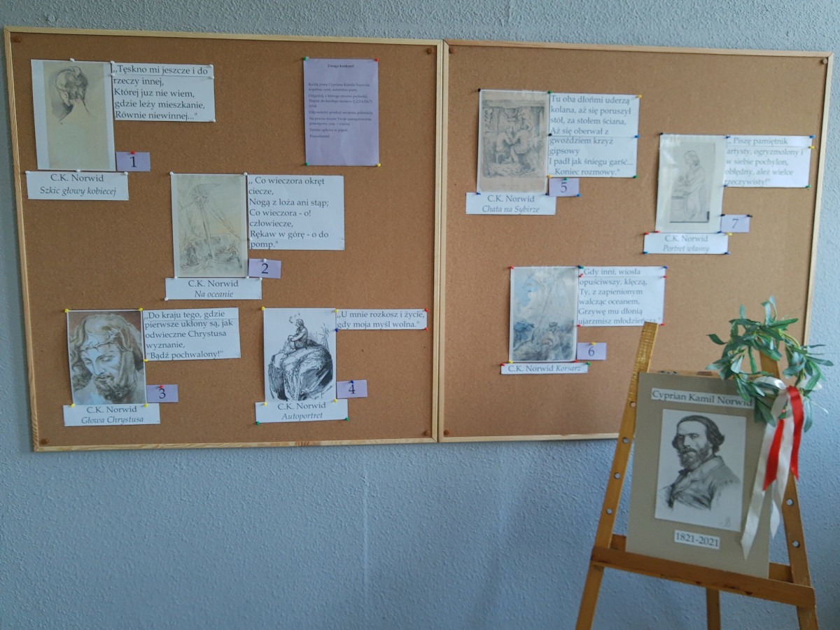 Właśnie dlatego rok 2021 został ogłoszony Rokiem Norwida. A miesiąc wrzesień – miesiącem dedykowanym w sposób szczególny temu twórcy. Z tej okazji, uczniowie Siedemnastki mogli uczestniczyć w zajęciach poświęconych poecie i jego twórczości, wziąć udział w wydarzeniu, jakim jest spotkanie w ,,Kawiarence Literackiej” i odczyt utworów Norwida. Ponadto, mogli obejrzeć wystawę jego grafik i rysunków oraz wziąć udział w konkursie i wykazać się znajomością wierszy poety.
