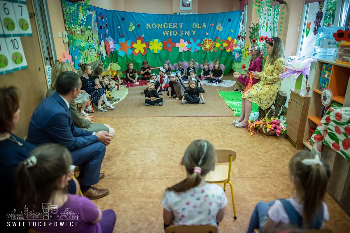 Czas urozmaicony był także występem dzieci z grup Słoneczka, Biedronki oraz Misie, które przygotowały przedstawienie zatytułowane “Koncert dla Wiosny”.