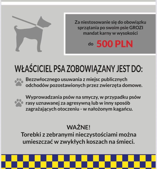 Za nieprzestrzeganie przepisów grozi mandat w wysokości do 500 zł. Strażnicy miejscy będą kontrolować parki, osiedla oraz popularne tereny spacerowe.