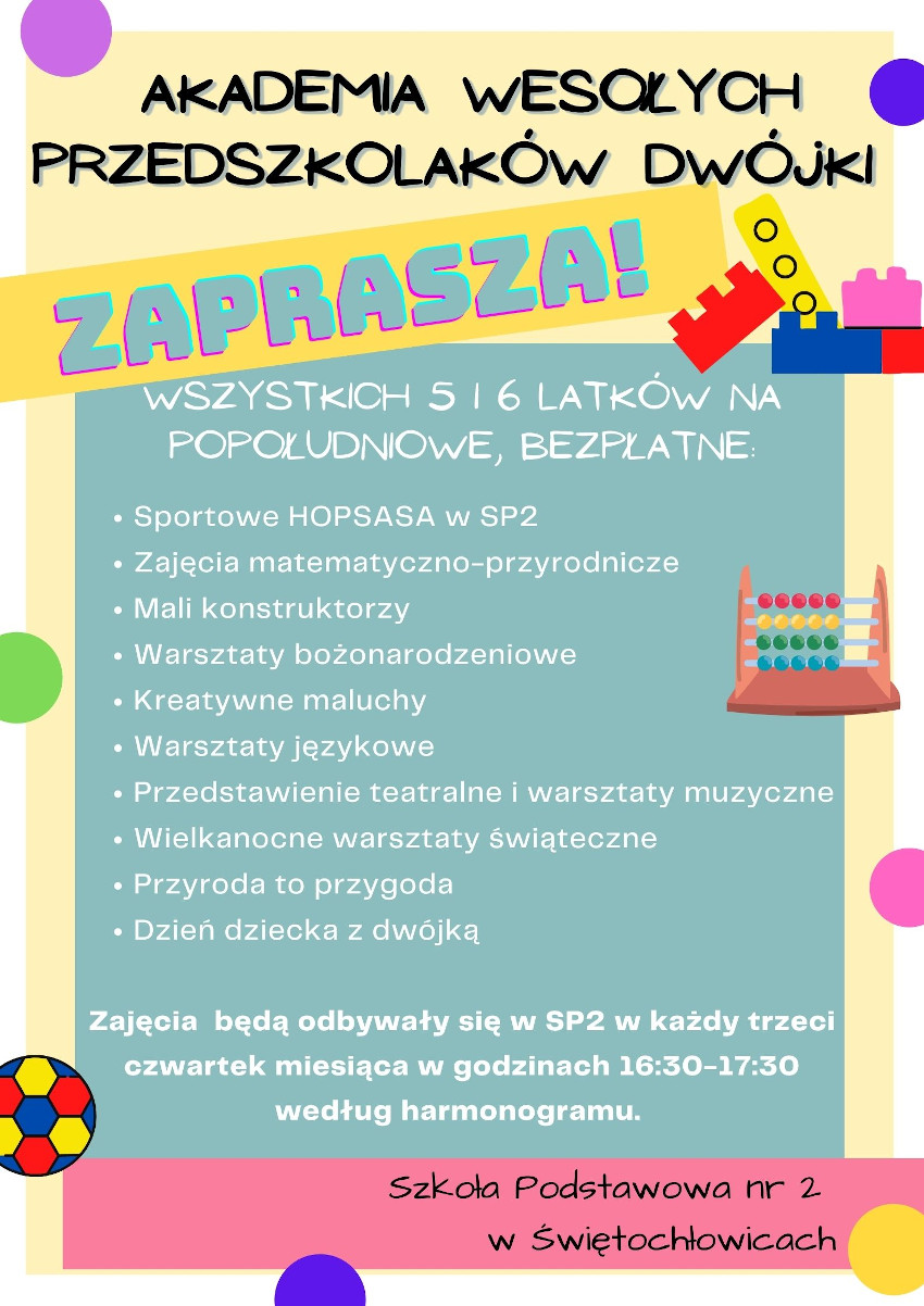 Co miesiąc, w świętochłowickiej Szkole Podstawowej nr 2, odbywać się będą spotkania dla pięcio- i sześciolatków ze Świętochłowic i okolic – Dwójkolandia.
