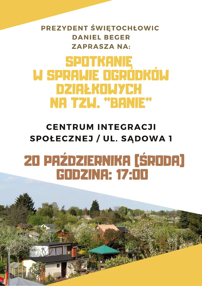 Prezydent Świętochłowic Daniel Beger zaprasza na spotkanie ws. ogródków działkowych na tzw. „Banie”.