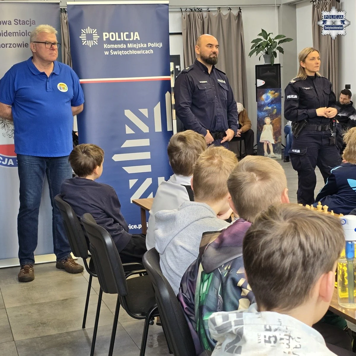 W Filii nr 1 Miejskiej Biblioteki Publicznej w Świętochłowicach odbyły się rozgrywki szachowe w ramach akcji “Bezpieczne ferie 2026”. W szranki turniejowe stanęła liczna grupa młodzieży. W przerwie, podczas podsumowania rozgrywek policjanci w raz z przedstawicielami Powiatowej Stacji Sanitarno-Epidemiologicznej w Chorzowie przeprowadzili prelekcję na temat bezpieczeństwa w trakcie trwających ferii zimowych.
