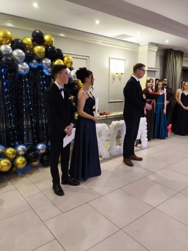 Atmosfera balu od samego początku sprzyjała dobrej zabawie. Eleganckie stroje, tradycyjny polonez oraz parkiet pełen tańczącej młodzieży sprawiły, że studniówka na długo pozostanie w pamięci uczestników.