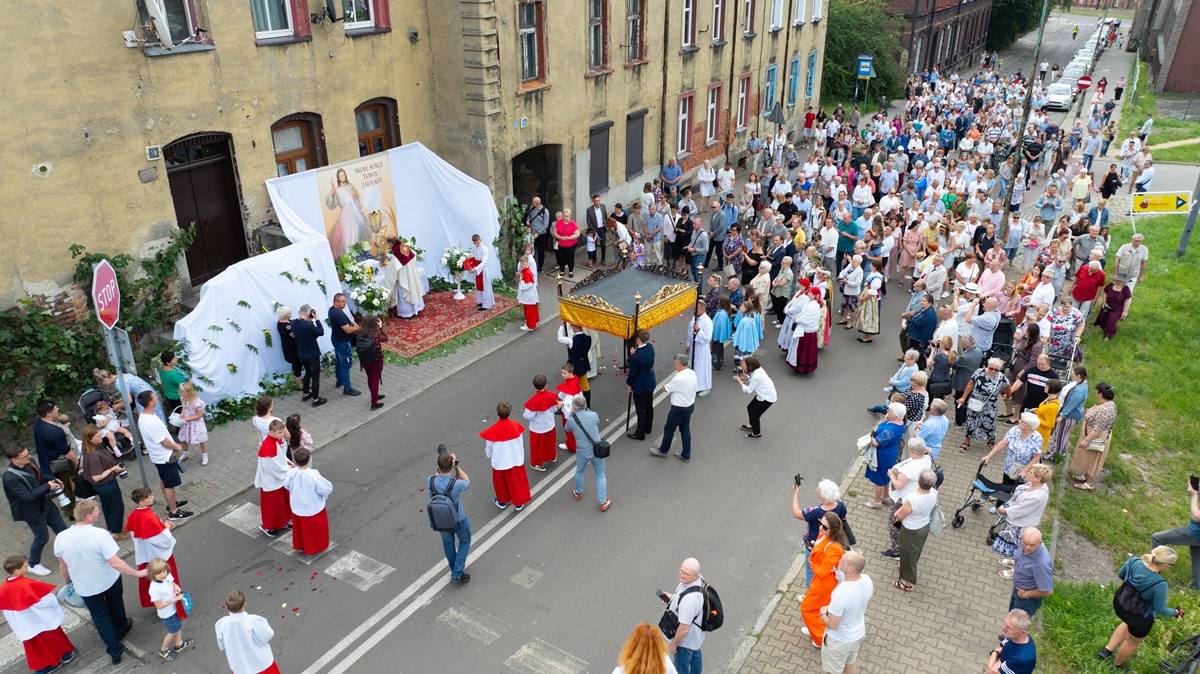 Dzisiaj po uroczystej mszy świętej z kościoła pw. św. Augustyna w dzielnicy Lipiny wyruszyła tradycyjna procesja Bożego Ciała. Na czele kobiety, mężczyźni, młodzież i dzieci w tradycyjnych, śląskich strojach. Co jeszcze sprawia, że to jedyna taka procesja na Śląsku?