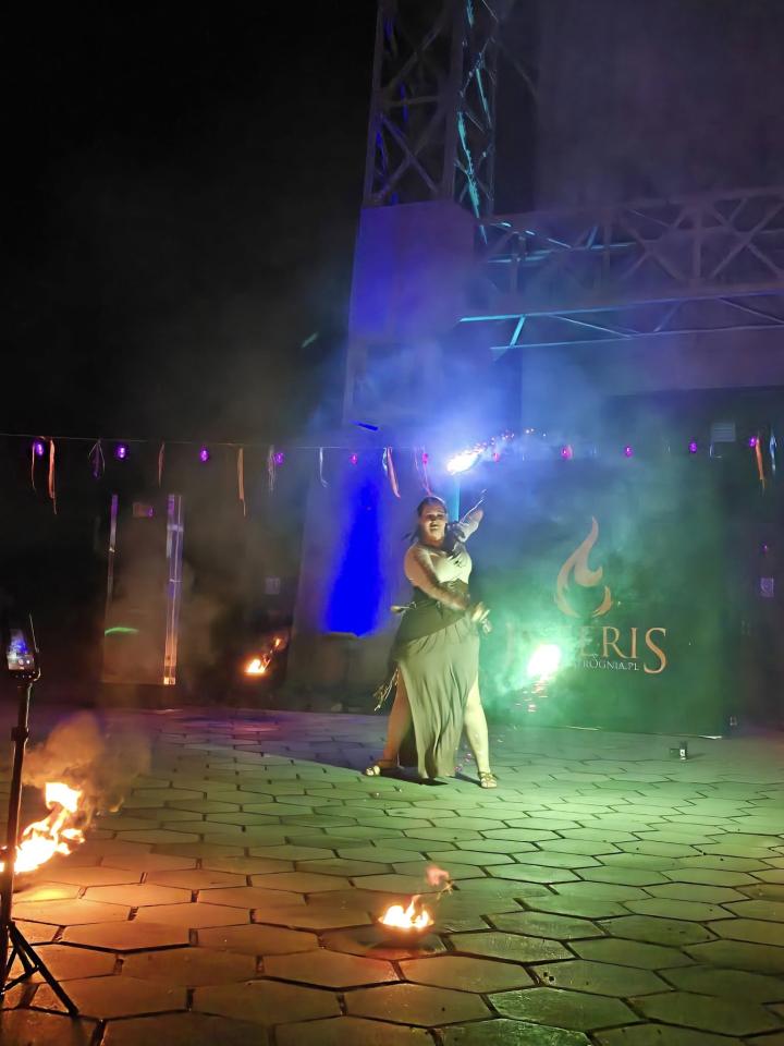 Po pokonaniu kilkunastokilometrowej trasy, uczestnicy dotarli pod Wieżę KWK Polska, gdzie czekała na nich niezwykła niespodzianka – widowiskowy pokaz ognia w wykonaniu Inferis Teatr Ognia. Wieczór zakończyło wspólne ognisko, które było okazją do rozmów, wymiany wrażeń i poznania innych miłośników lokalnej historii.