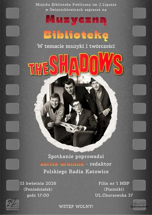 Miejska Biblioteka Publiczna im. J. Ligonia w Świętochłowicach zaprasza na kolejne wydarzenie z cyklu „Muzyczna Biblioteka”. Najbliższe spotkanie będzie poświęcone muzyce i twórczości legendarnego zespołu The Shadows, a poprowadzi je Bartek Gruchlik, redaktor Polskiego Radia Katowice. Wstęp jest wolny.