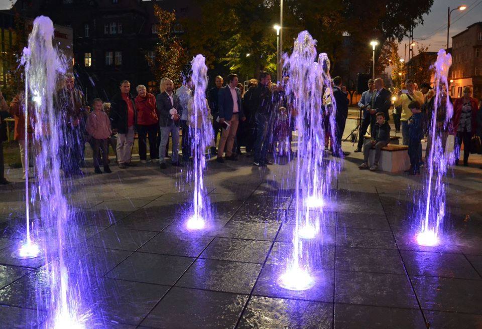 Przestrzeń na ul. Katowickiej 30a-30b przeszła prawdziwą metamorfozę. Powstała tutaj fontanna nasadzono drzewa i nową zieleń pojawiły się ławki i elementy małej architektury.