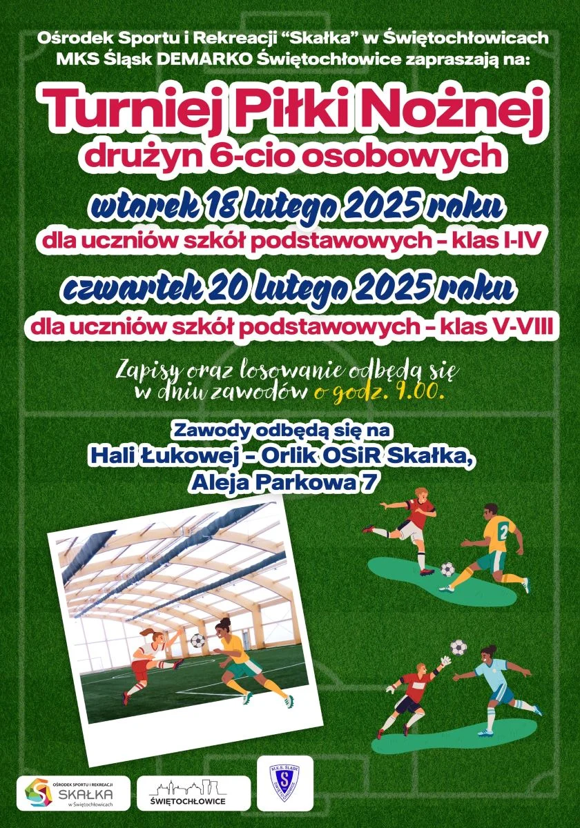 18 i 20 lutego w Hali Łukowej — Orlik OSiR „Skałka” odbędzie się Turniej piłki nożnej drużyn 6-osobowych. We wtorek 18 lutego będą grały drużyny składające się z uczniów szkół podstawowych klas I-IV, a 20 lutego z uczniów klas V-VIII. To świetna okazja do dobrej zabawy i zdrowej rywalizacji z rówieśnikami. Zapisy i losowanie odbędą się w dniu zawodów o godzinie 09:00.