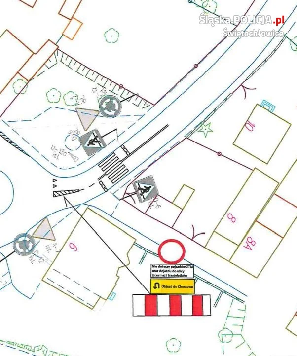 - ulica Szpitalna: wprowadzony zostanie zakaz ruchu pojazdów na odcinku ulicy Szpitalnej od ronda do ulicy Polnej w celu zapewnienia odpowiedniej komunikacji oraz bezpieczeństwa użytkowników ruchu drogowego w tym bezpiecznego poruszania się pieszych w obrębie cmentarza. Na odcinku od skrzyżowania ulic Szpitalnej z Licealną do skrzyżowania z ulicą Polną zostanie umieszczony znak B1 – „zakaz ruchu w obu kierunkach” z tabliczką „za wyjątkiem pojazdów ZTM”. Od ronda z ulicą Wyzwoleni do skrzyżowania z ulicą Licealną zostanie umieszczony znak B1 – „zakaz ruchu w obu kierunkach” z tabliczką „za wyjątkiem pojazdów ZTM oraz dojazdu do ulicy Licealnej i Nastolatków”. W związku z zamknięciem odcinka ulicy Szpitalnej wyznaczono objazd z i do Chorzowa,