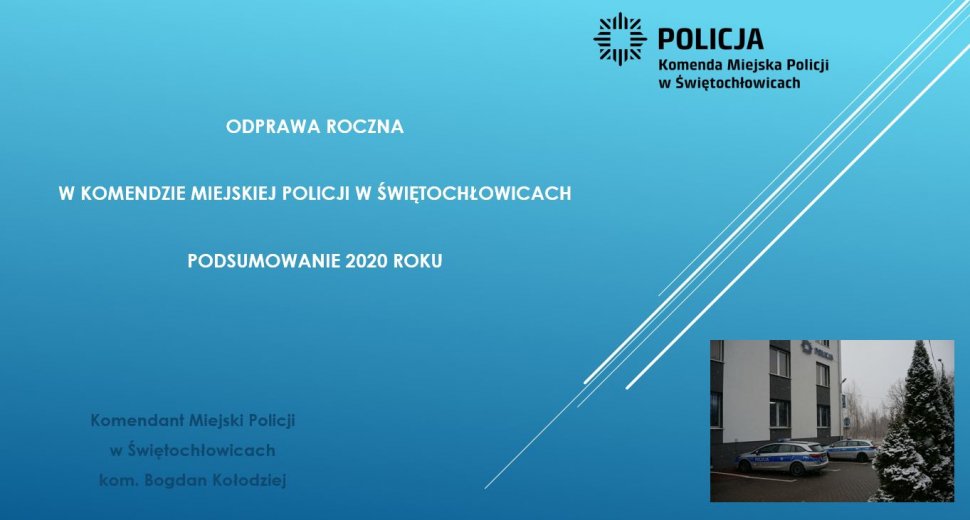 W Komendzie Miejskiej Policji w Świętochłowicach odbyła się odprawa roczna, podsumowująca pracę miejscowej Policji w 2020 roku. Podczas wideokonferencji zaprezentowano i omówiono wyniki osiągnięte przez świętochłowickich policjantów w ubiegłym roku.