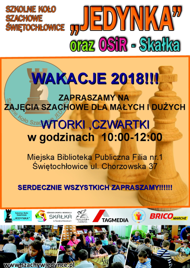 Wszystkich miłośników królewskiej gry zapraszamy we wtorki oraz czwartki w godzinach 10:00-12:00 do Miejskiej Biblioteki Publicznej nr 1 przy ul. Chorzowskiej 37.