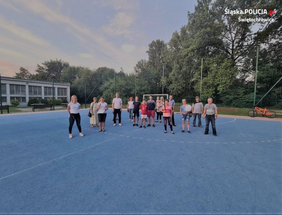 Policjantka z miejscowej komendy, wspólnie z Prezydentem Świętochłowic oraz przedstawicielami CIS i SOW Przystań rozdawała świętochłowickiej młodzieży karnety zachęcające do aktywności fizycznej.