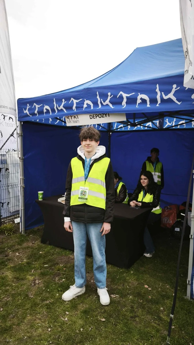 Młodzi wolontariusze czuwali nad bezpieczeństwem uczestników, zabezpieczali trasę biegu, a także obsługiwali punkt nawadniania i depozyt. Ich wsparcie było ważnym elementem całego wydarzenia.