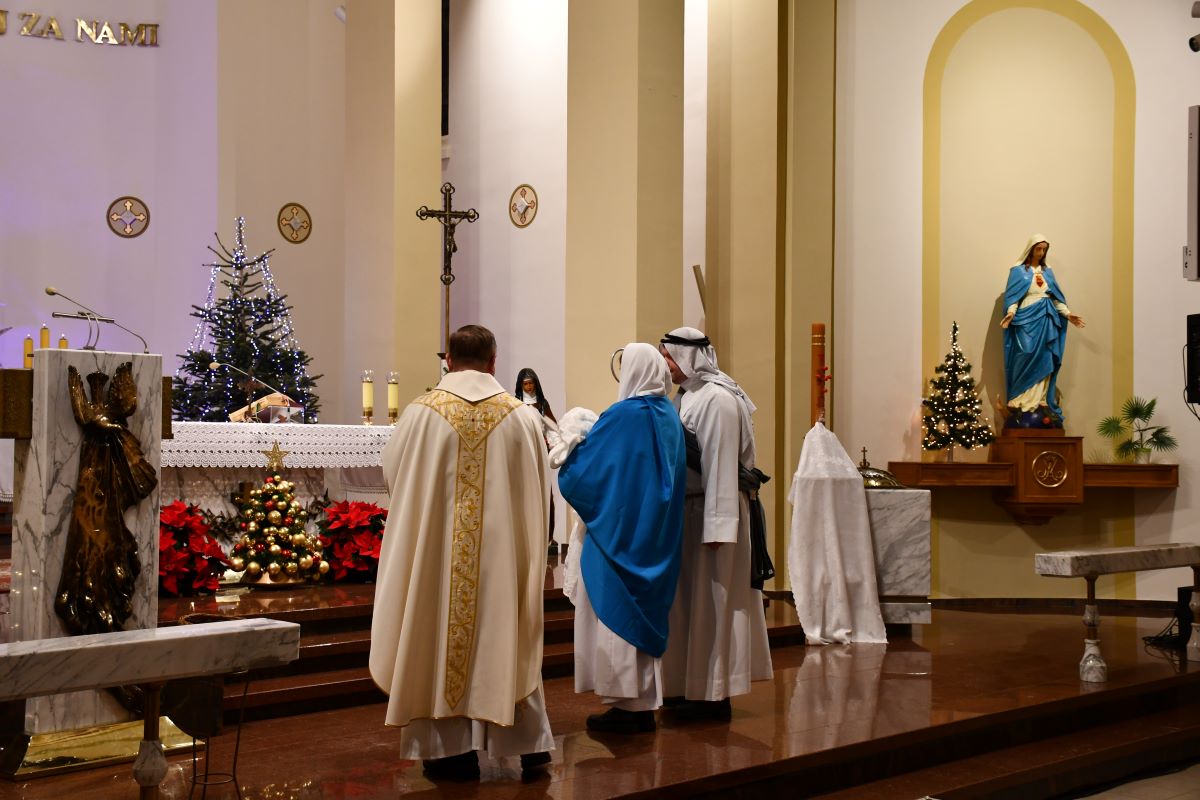 Po dotarciu pod Kościół św. Józefa znajdującego się na ulicy Wojska Polskiego, uczestnicy przemarszu mogli obejrzeć przygotowaną scenkę, upamiętniającą wydarzenia znane z Ewangelii św. Mateusza i być świadkami złożenia darów Panu Jezusowi. Pochód zakończył się wspólnym śpiewaniem kolędy oraz uroczystą Mszą Świętą.