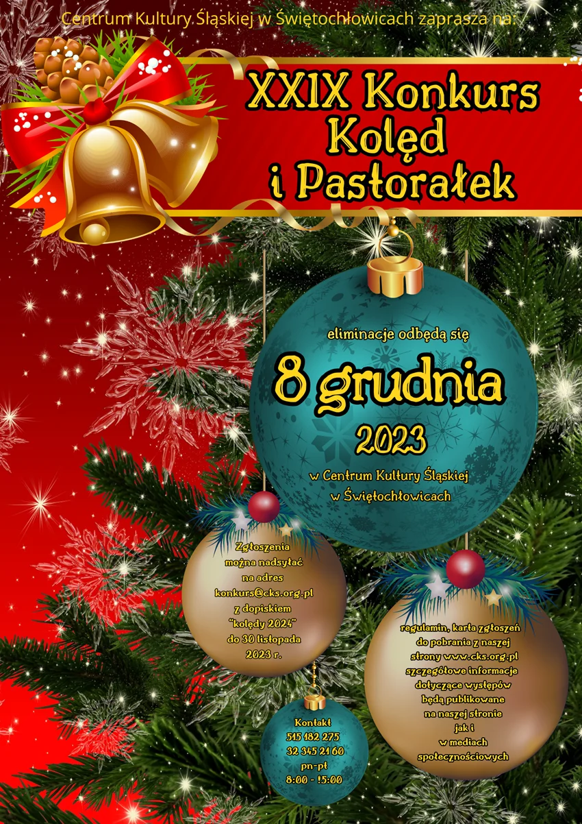 8 grudnia w Centrum Kultury Śląskiej w Świętochłowicach odbędą się eliminacje do XXIX Konkursu Kolęd i Pastorałek.