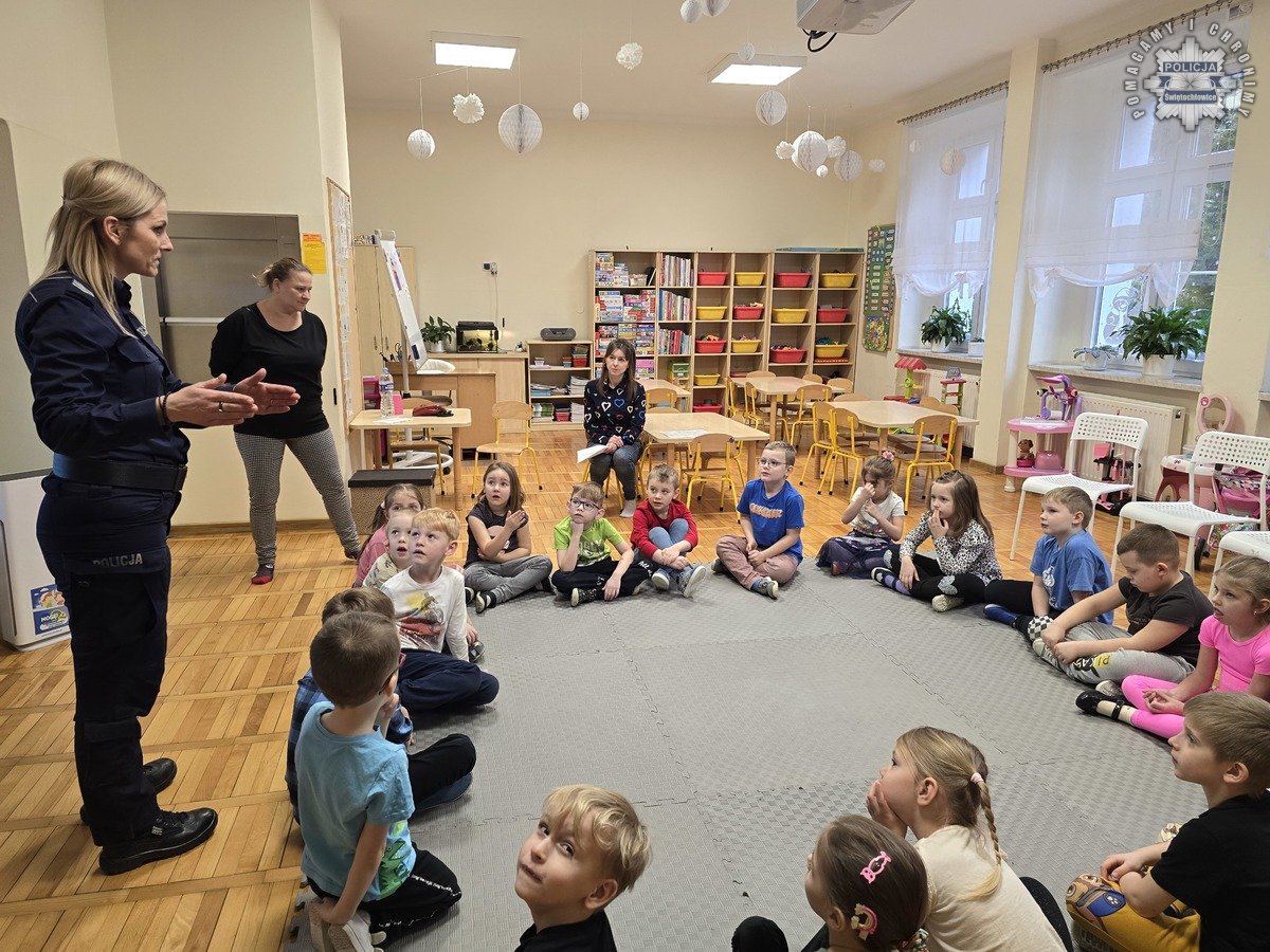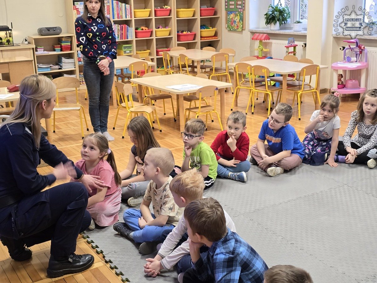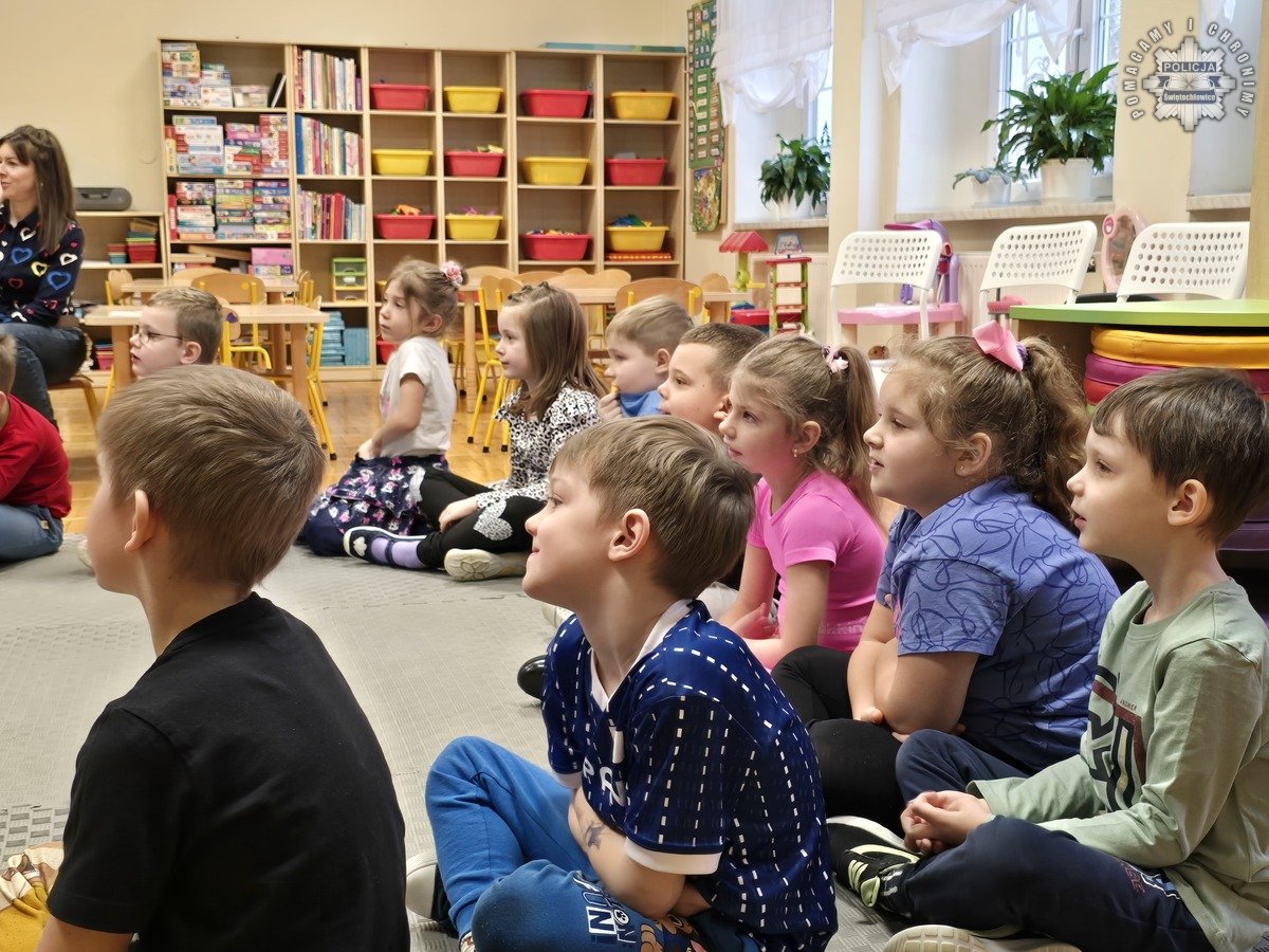Policjanci ze świętochłowickiej komendy oraz przedstawiciele SOW Przystań odwiedzili Przedszkole numer 4, aby porozmawiać z najmłodszymi mieszkańcami miasta o bezpieczeństwie podczas ferii zimowych. Spotkanie odbyło się w nietypowej formie wywiadu.