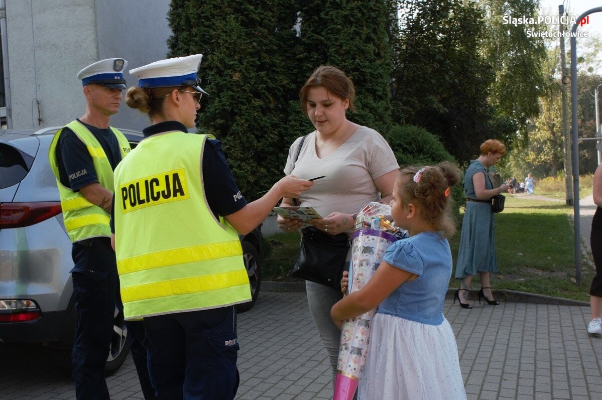 Wczoraj mundurowi zagościli podczas uroczystego rozpoczęcia roku szkolnego w Szkole Podstawowej nr 19 w Świętochłowicach. Z ramienia kierownictwa miejscowych policjantów reprezentowała mł. insp. Monika Francikowska - Pierwszy Zastępca Komendanta Miejskiego Policji w Świętochłowicach. Przed szkołą mundurowi z drogówki rozdawali dzieciom odblaski i specjalnie przygotowany elementarz bezpiecznego poruszania się po drogach.