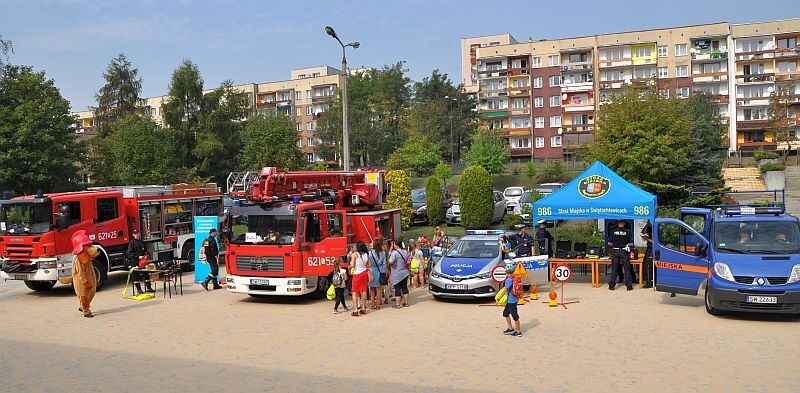 Na wyremontowanym placu przed Zespołem Szkół Ogólnokształcących nr 2 dzieci poznały zasady bezpiecznego poruszania się po drogach. Zapoznały się też z należącymi do Policji i Straży Miejskiej sprzętem i radiowozami. Zobaczyły również wyposażenie wozów strażackich. Dużą atrakcją była możliwość wejścia do środka samochodów i uruchomienie syreny.
