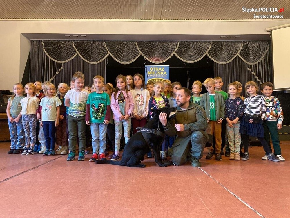 Podczas spotkania, młodych mieszkańców miasta odwiedził także specjalny gość. Na co dzień pełniący służbę na lotnisku pies Straży Granicznej - "Daks", który dał wszystkim pokaz części swoich umiejętności.