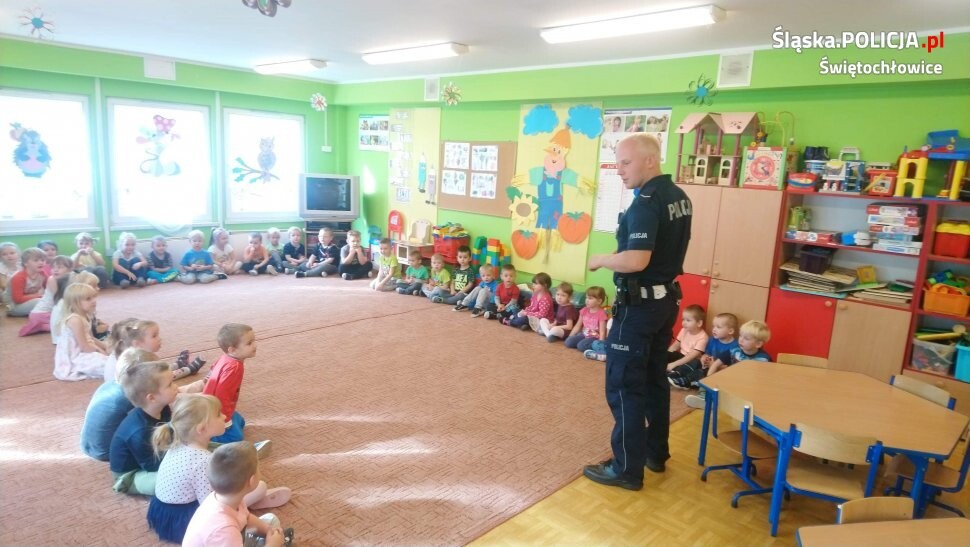 Policjanci z Komendy Miejskiej Policji w Świętochłowicach odwiedzili przedszkole nr 3 przy ulicy Harcerskiej, by opowiadać o bezpieczeństwie w przestrzeni miejskiej, głównie w drodze do i z przedszkola. W spotkaniach wzięło udział aż 95 dzieci. Jak zwykle nie zapomniano o pamiątkowych upominkach dla najmłodszych.