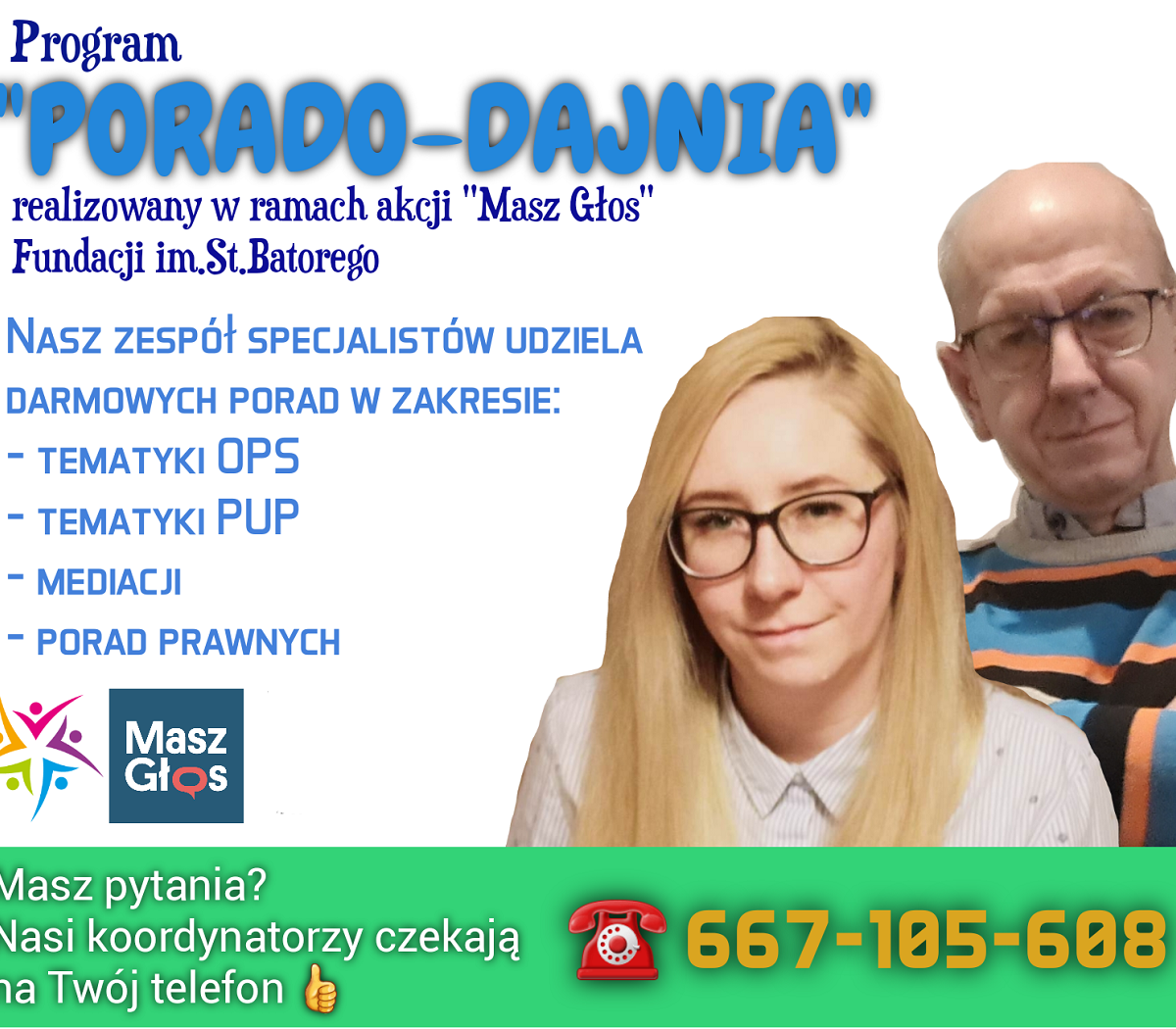Aby uzyskać poradę, wystarczy skontaktować się z koordynatorami akcji "Porado-Dajnia" pod nr telefonu: 667 105 608, którzy umówią nas ze specjalistą w danej dziedzinie.