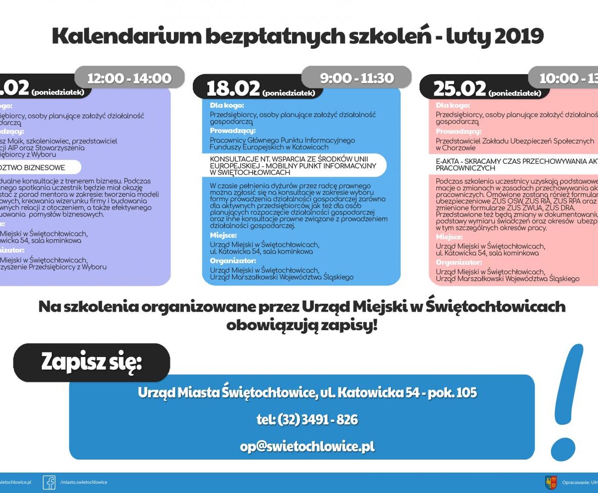 Kreowanie wizerunku, tworzenie dobrego biznesplanu, możliwość otrzymania wsparcia ze środków unijnych czy nowe zasady dotyczące przechowywania akt pracowniczych. To tylko niektóre z tematów, jakie będą poruszane podczas szkoleń w lutym. Zachęcamy do zapoznania się z kalendarium bezpłatnych szkoleń.
