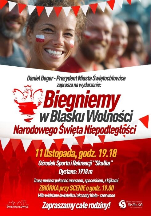 W Świętochłowicach 11 listopada odbędzie się Bieg Niepodległości „Biegniemy w blasku wolności”. Trasa 1918 m dla całych rodzin, z pieskami, kijkami i w biało-czerwonych barwach.