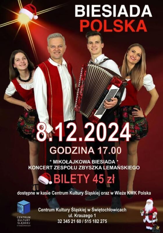 Świętochłowice już 8 grudnia 2024 roku staną się miejscem wyjątkowej mikołajkowej zabawy. O godzinie 17:00 w Centrum Kultury Śląskiej odbędzie się Mikołajkowa Biesiada Polska, na którą serdecznie zaprasza Zbyszek Lemański.