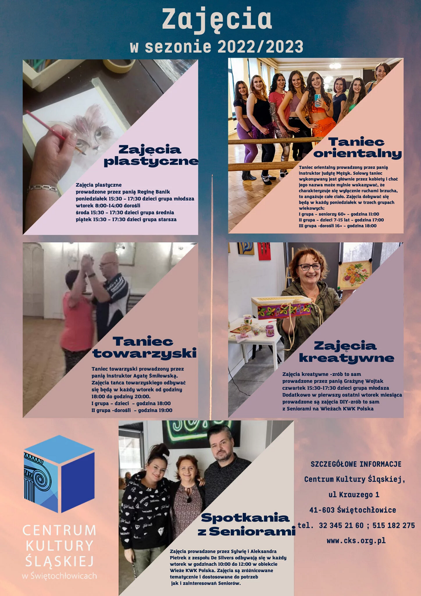Centrum Kultury Śląskiej w Świętochłowicach serdecznie zaprasza do zapisów na zajęcia w sezonie od jesieni do wiosny.